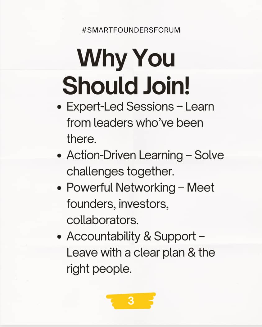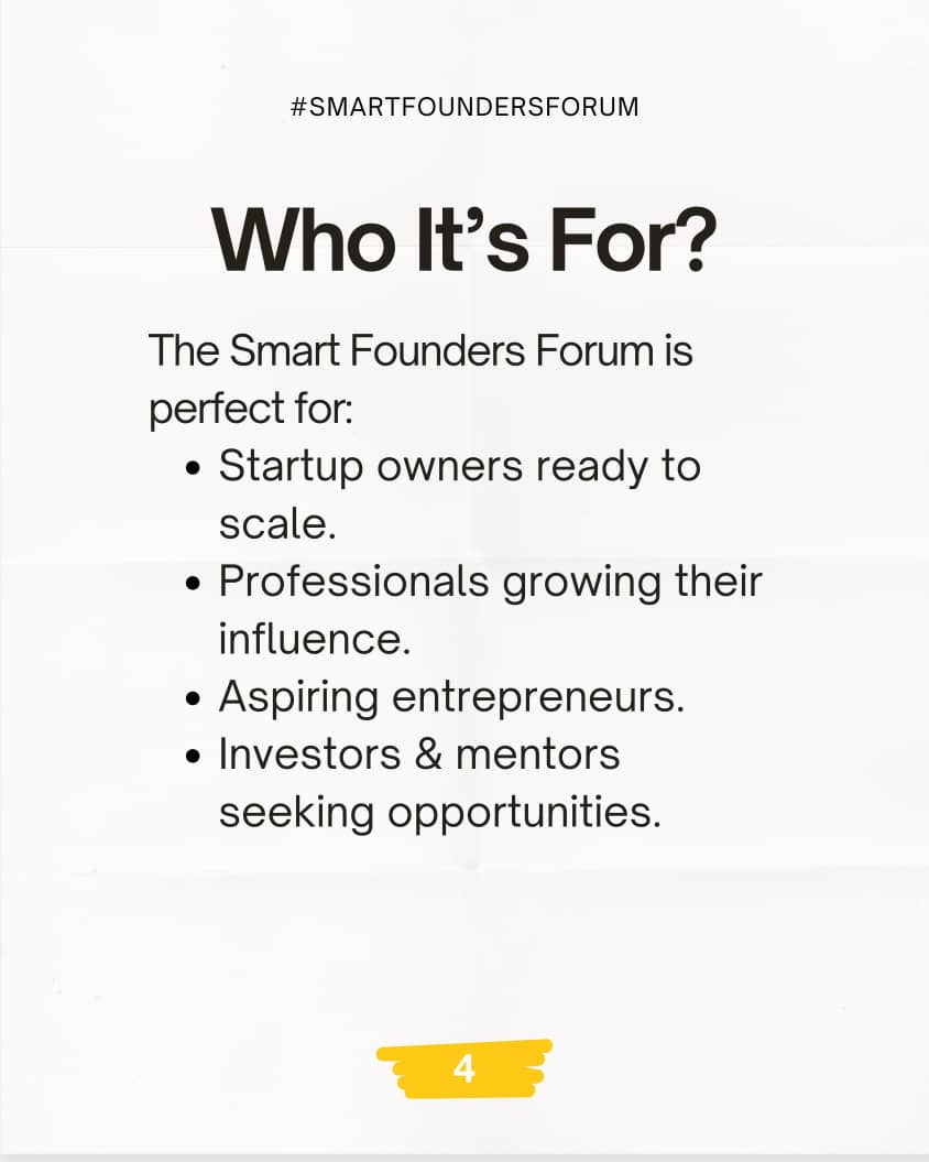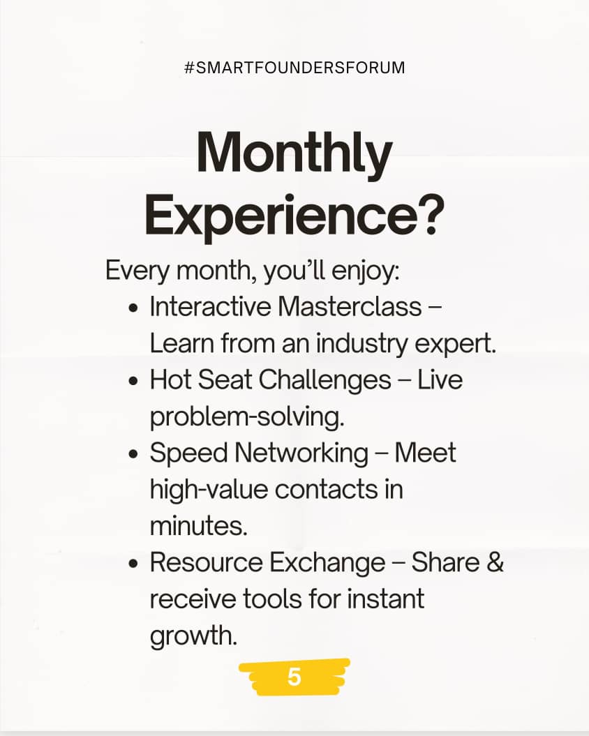 The Smart Founders Forum is not just another business meet-up it’s a curated monthly experience where you gain practical insights, meet high-impact professionals, and work on real solutions for your business growth.